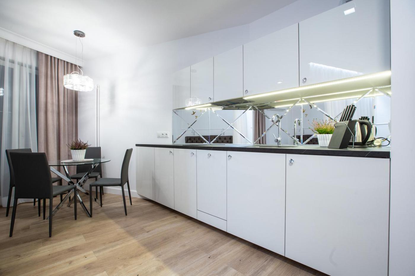 Apartament. The air-conditioned apartment has 1 bedroom and 1 bathroom with a shower and a bidet. Guests can make meals in the kitchen that has a stovetop, a refrigerator, a dishwasher and kitchenware. Boasting a terrace with city views, this apartment also features soundproof walls and a flat-screen TV with cable channels. The unit has 2 beds. Apartament - 4 osobowy. Powierzchnia pokoju ok.: 32 mkw.