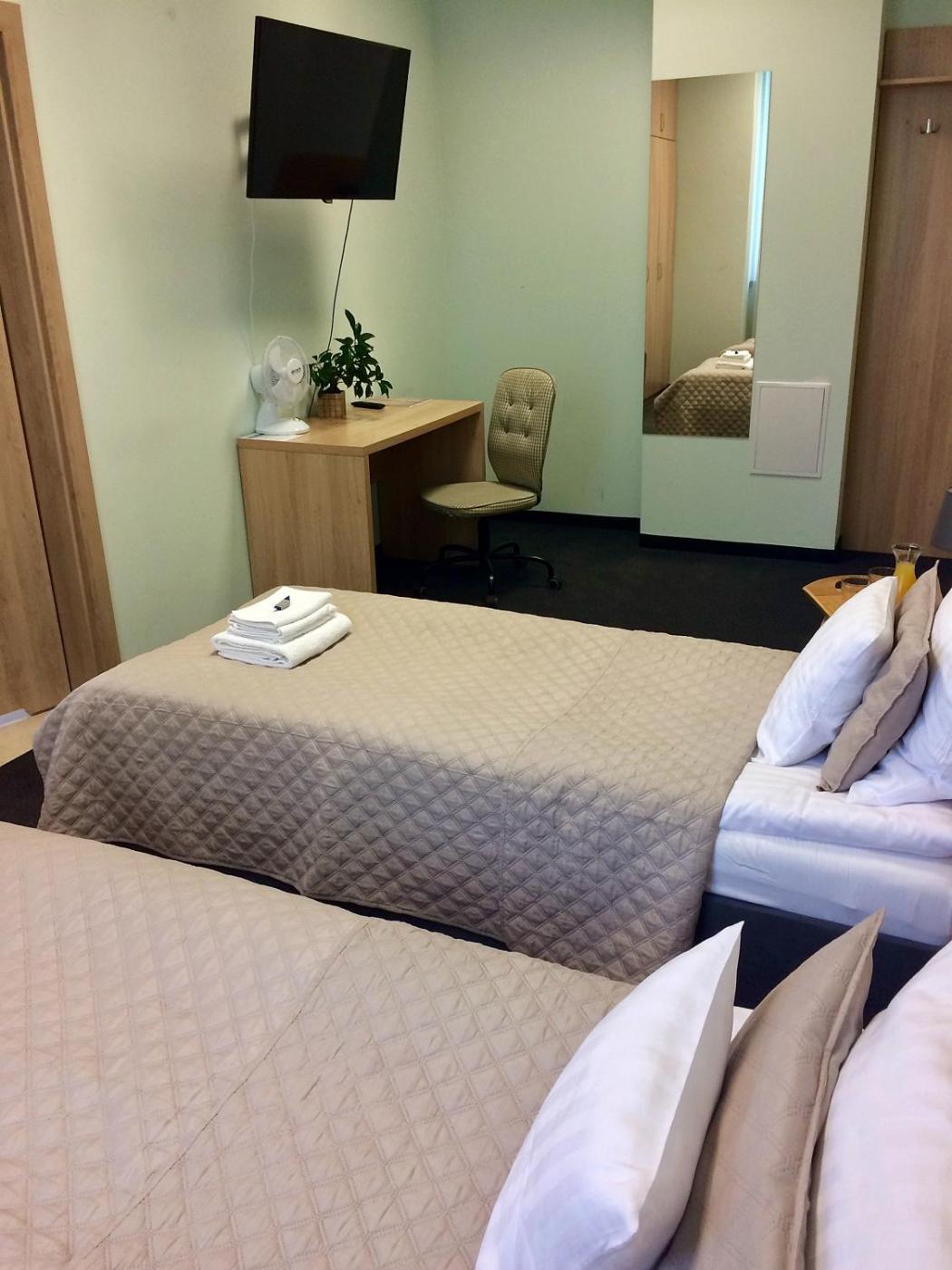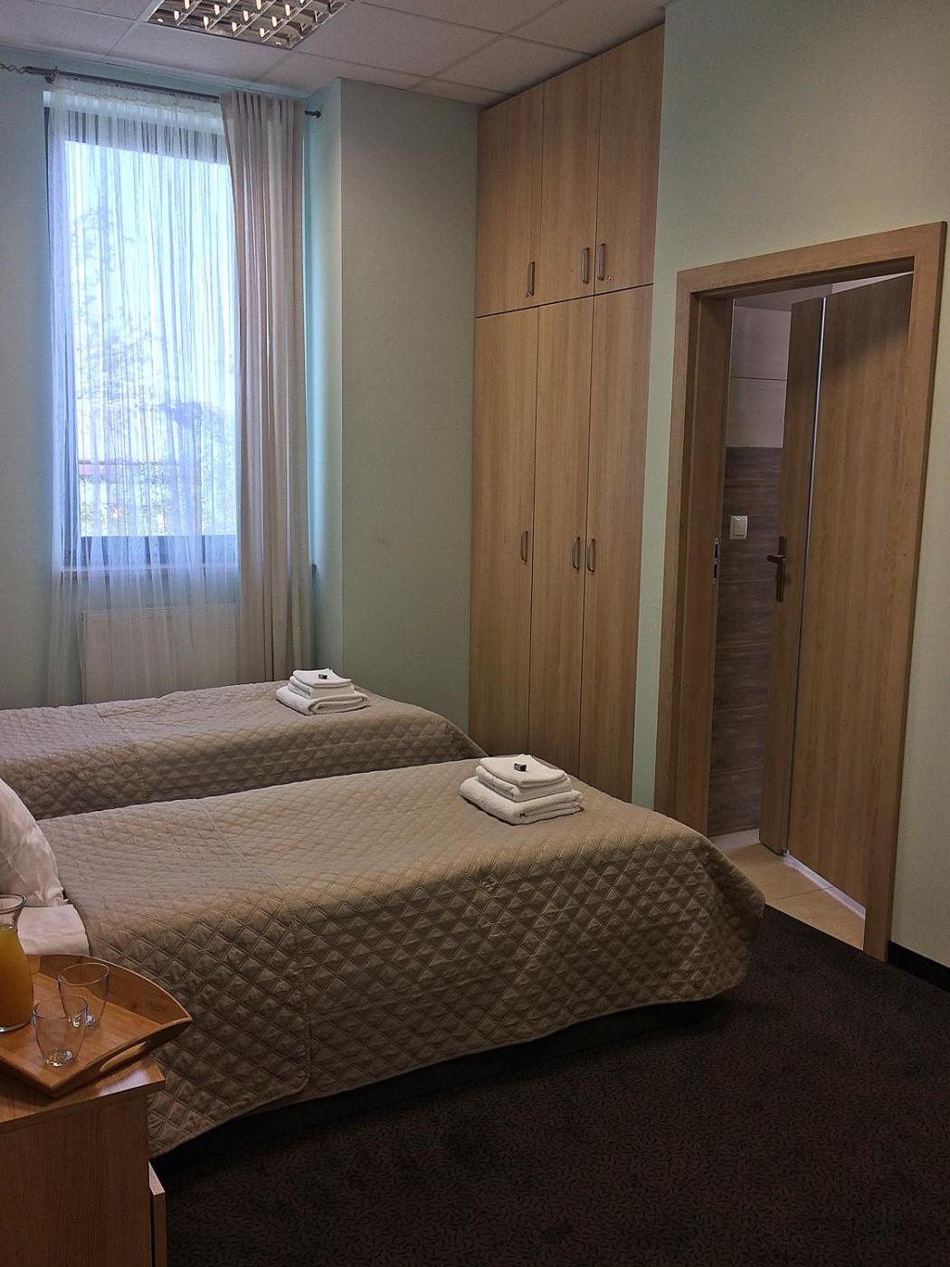 Mały pokój Dwuosobowy. In the kitchen, guests will find a stovetop, a refrigerator, kitchenware and a tea and coffee maker. The double room provides a wardrobe and a carpeted floor, as well as a shared bathroom featuring a hairdryer. The unit offers 2 beds. Pokój Dwuosobowy - 3 osobowy. Powierzchnia pokoju ok.: 13 mkw. ;