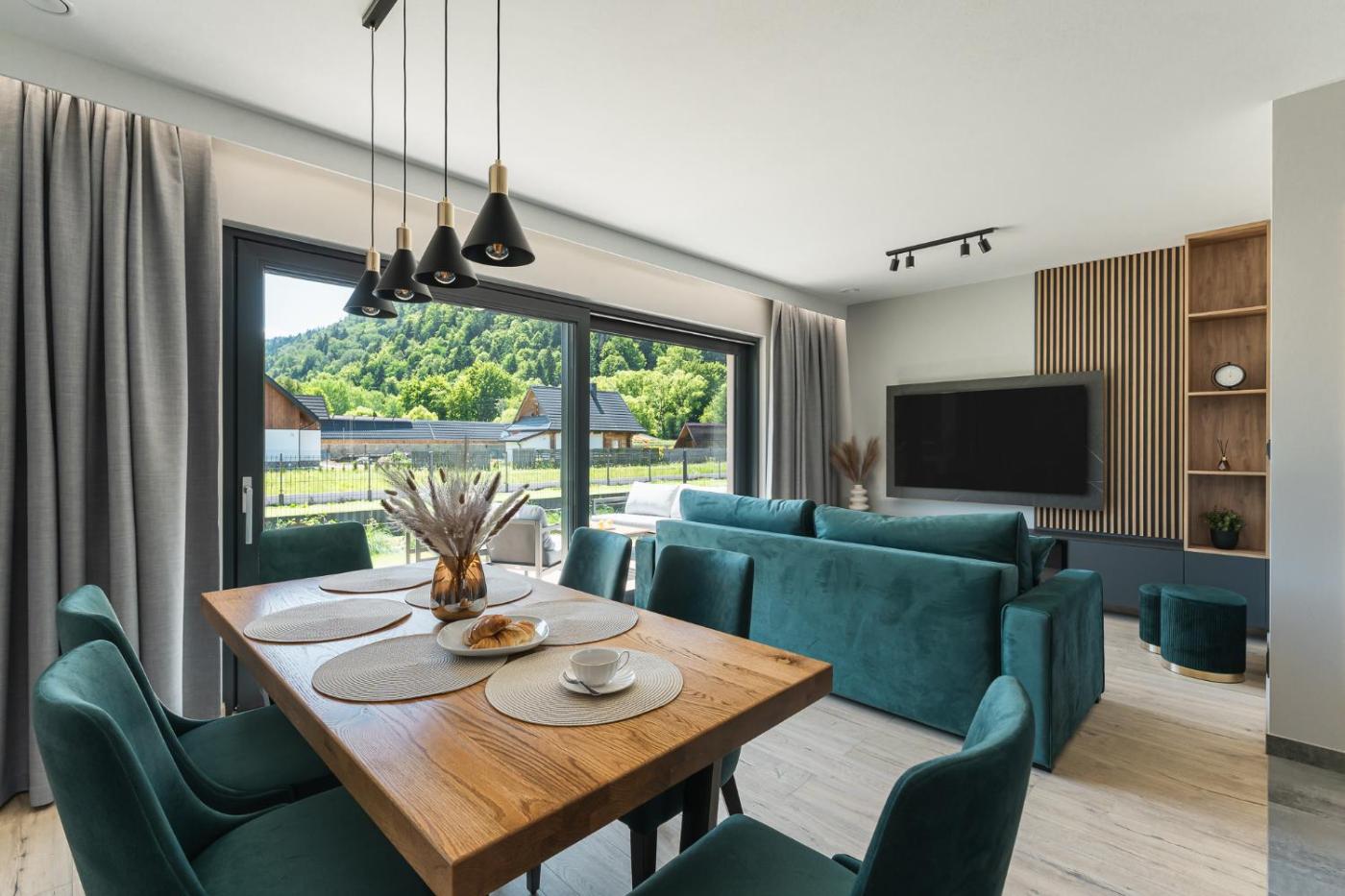 Domek z 3 sypialniami. This chalet features a fireplace. Featuring a private entrance, this air-conditioned chalet comprises 1 living room, 3 separate bedrooms and 2 bathrooms with a shower and a hairdryer. Guests will find a stovetop, a refrigerator, a dishwasher and kitchenware in the well-fitted kitchen. The chalet also provides guests with a barbecue. The spacious chalet provides a washing machine, soundproof walls, a tea and coffee maker, a flat-screen TV with cable channels, as well as garden views. The unit offers 5 beds. Domek - 7 osobowy. Powierzchnia pokoju ok.: 77 mkw. ;